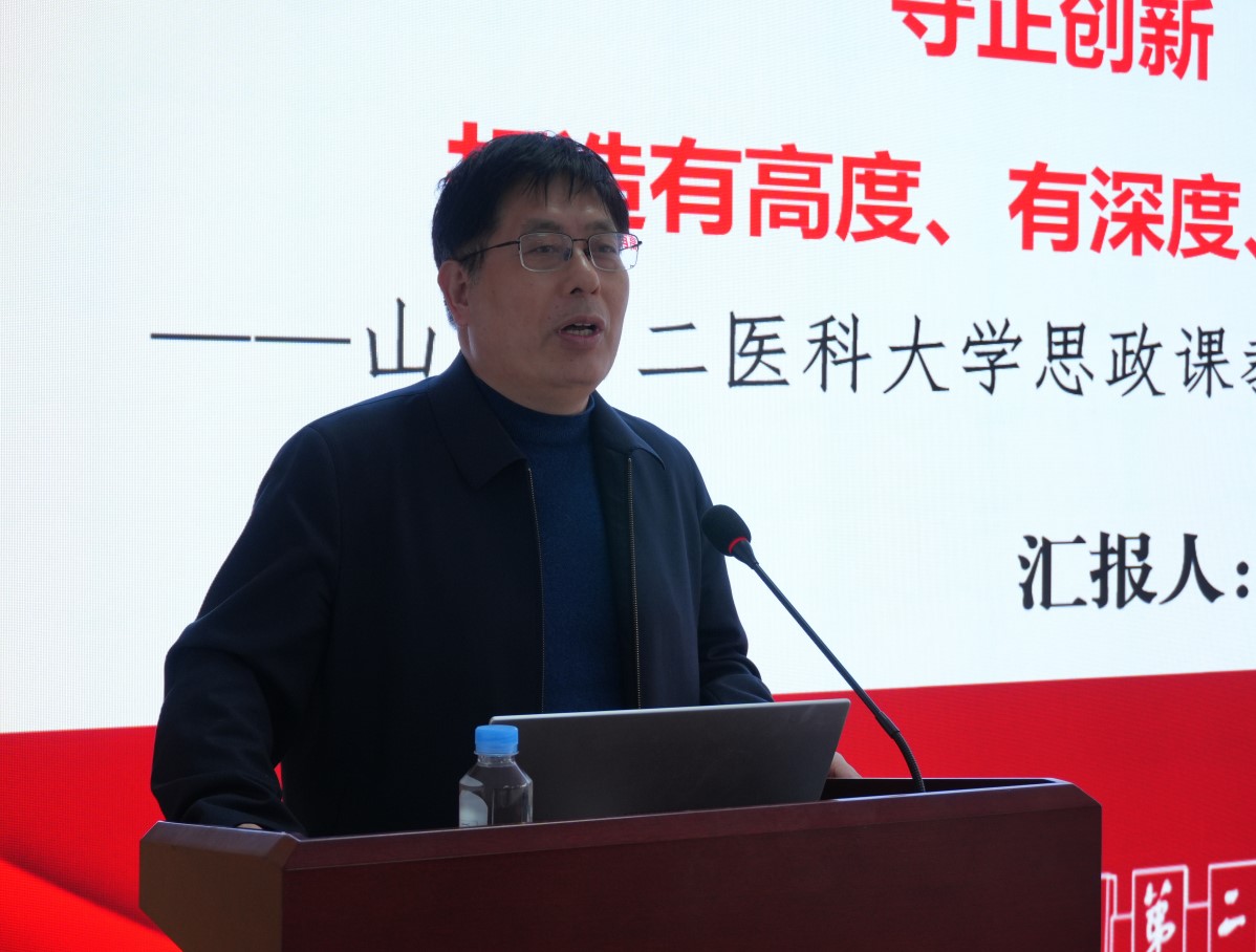 报告会上,李笃武教授以深厚的学术积淀、丰富的实践经验和鲜活的案例,详细介绍了山东第二医科大学马克思主义学院的总体发展情况,从师资队伍建设、学科平台搭建到学术研究推进等方面,展现了学院作为思政教育主阵地的坚实基础。同时,他重点分享了思政课建设与改革的一系列创新性举措,以及由此取得的显著成效,让我们清晰看到了一所高校在思政教育内涵式发展道路上的扎实探索。这些实践经验为我们解决自身思政课建设中遇到的问题提供了可参考的路径范式。