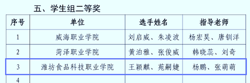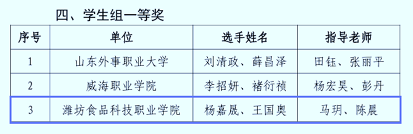 12月21日,2024年山东省“技能兴鲁”职业技能大赛第七届山东省新一代信息技术创新应用职业技能竞赛圆满落幕。竞赛分为学生组和教师组,马玥、陈晨老师指导的学生杨嘉晟、王国奥获学生组一等奖;杨鹏、张萌萌老师指导的学生王颖麒、苑嗣婕获学生组二等奖;教师马玥、陈晨荣获优秀指导教师;杨鹏老师获教师组二等奖,马玥老师获教师组三等奖。