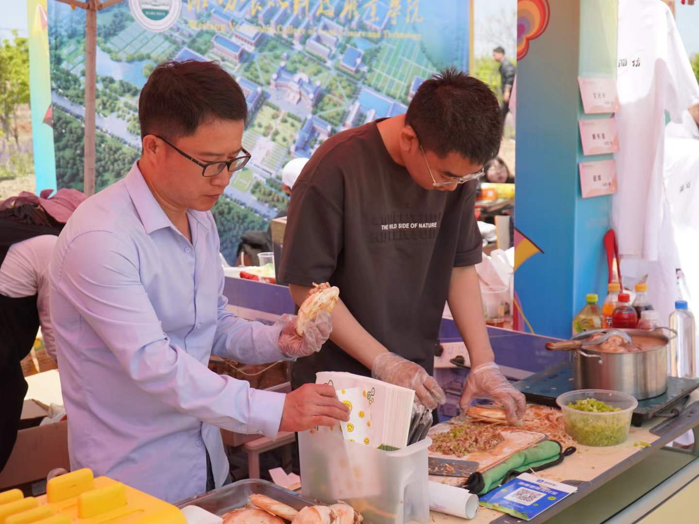本次大会,我校在现场设置了展位,食品科技系带来了精酿啤酒,现场制作肉夹馍,艺术传媒系展示师生制作的文创产品,医养健康系用自制香薰等产品传播健康理念,引得国内外游客纷纷驻足,既宣传了学校形象,也有效践行了“产、教、学、研一体化”的人才培养模式。