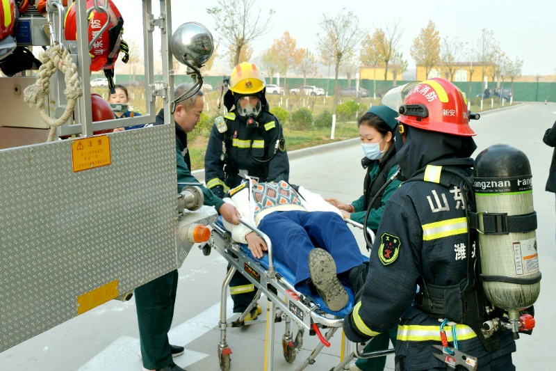 此次演练分初期火灾处置、地震逃生及火灾疏散演练、人员被困救援、医疗救援四个科目。