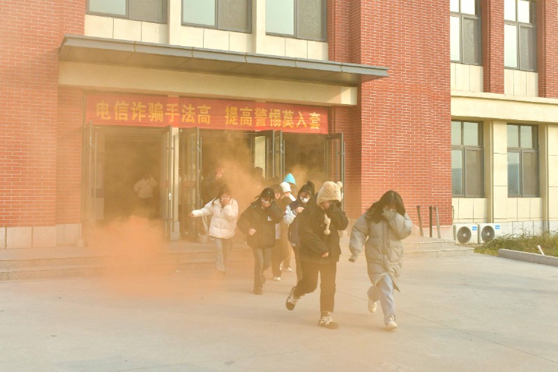 科目二是地震逃生及火灾疏散演练。在消防官兵和老师的疏散下,正在上课的同学们按照预先设定的路线,迅速而有序地疏散到指定的安全区域。大家在演练中表现出了极高的组织纪律性和团队协作精神,充分展现了学院师生的良好素质。