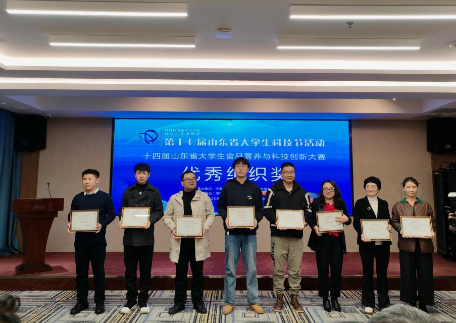 近日,第十七届山东省大学生科技节活动—十四届山东省大学生食品营养与科技创新大赛圆满落幕。我校学子凭借扎实的专业功底、创新的科研思维和出色的实践能力,在全省370余组入围决赛的队伍中脱颖而出,斩获多个奖项,学校被授予“优秀组织奖”。