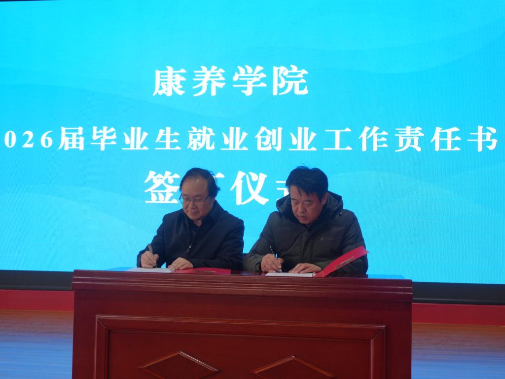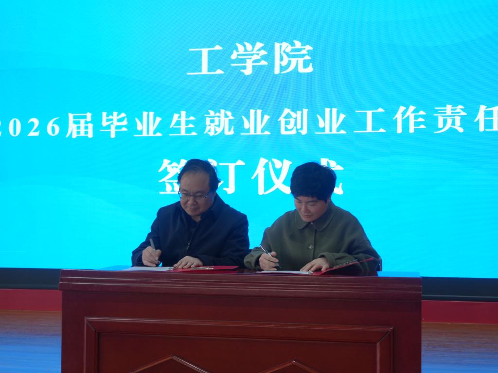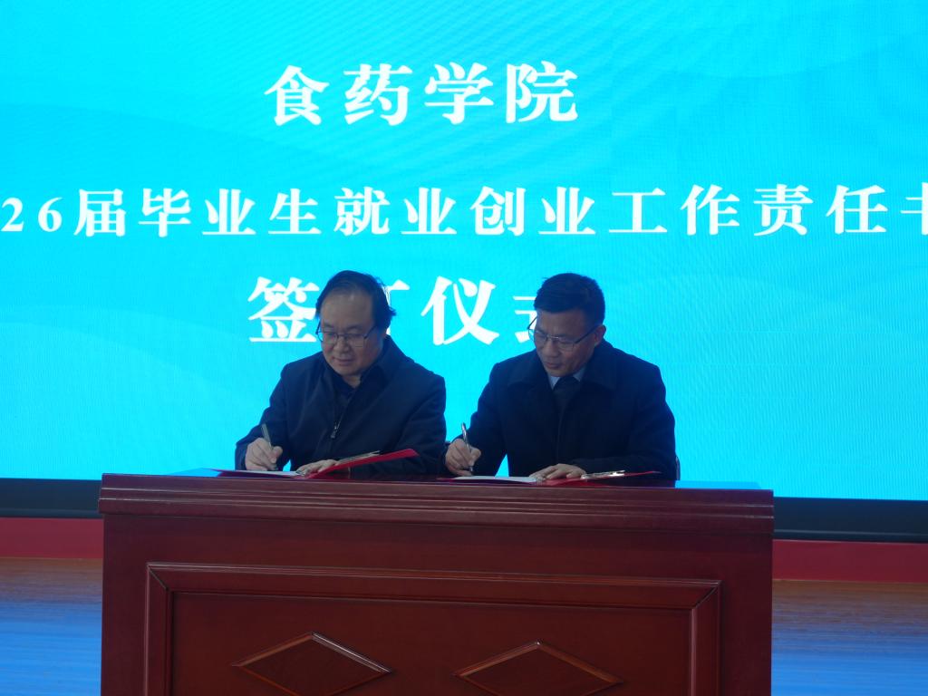 会上,学生工作部相关负责人解读了《潍坊食品科技职业学院就业工作专项经费管理办法》《潍坊食品科技职业学院2026届毕业生就业创业工作方案》;工学院、食药学院、康养学院、艺术传媒学院负责人结合专业特色与学生实际,依次汇报了本学院就业创业工作方案;亓俊忠代表学校与学生工作部、工学院、食药学院、康养学院、艺术传媒学院负责人依次签订了《2026届毕业生就业创业工作责任书》,以责任状形式压实各方工作责任。
