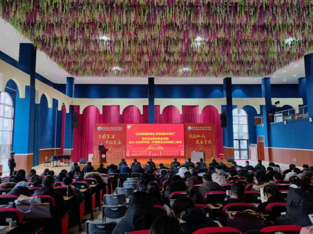 为深入贯彻国家职业教育改革发展战略部署,全面落实“教育强国”建设要求,精准对接学校“十五五”高质量发展目标,1月12日至13日,我校开展2025-2026学年第一学期期末全体教职工培训,学校党委书记肖明胜,党委副书记、校长亓俊忠出席会议并作专题报告,全体校领导、教职工参加。