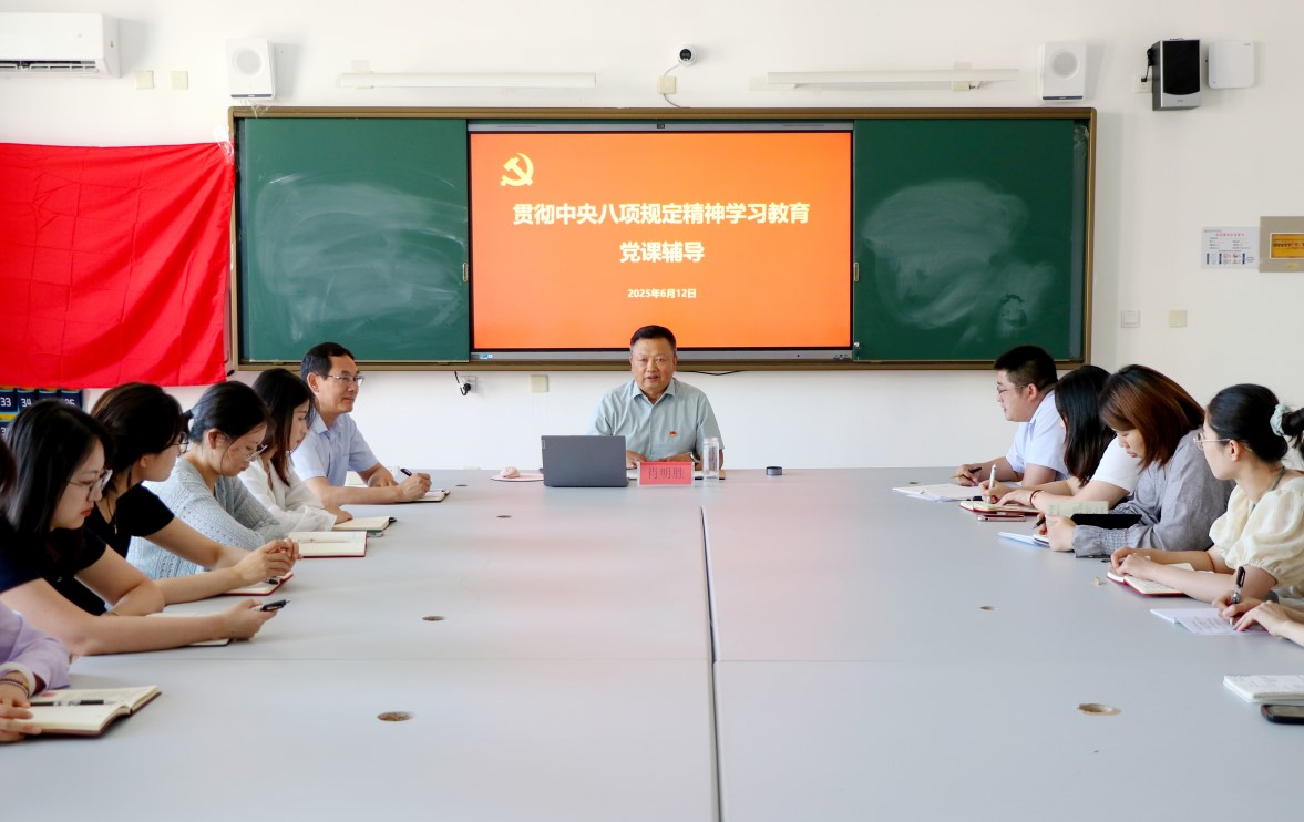 为推动中央八项规定精神学习教育,进一步加强作风建设,6月12日,学校党委书记肖明胜到艺术传媒学院作贯彻中央八项规定精神学习教育党课辅导,艺术传媒学院全体教师参会学习。