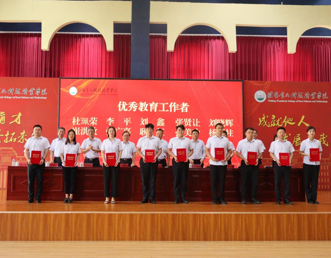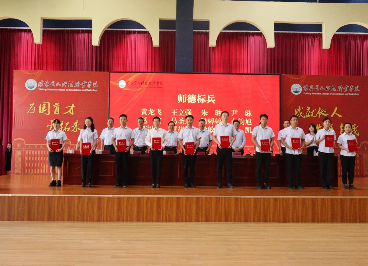 会上,宣读了师德标兵、优秀教师、优秀教育工作者、优秀辅导员、省级技能大赛成绩优异教师表彰决定,并为获奖人员颁奖;获奖代表“师德标兵”黄龙飞、“优秀辅导员”王立良分别发言;新入职教师进行集体宣誓。